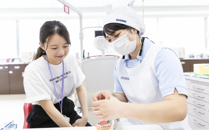 歯科医院と同じ設備を整え、就職後も変わらない環境で処置を行えるよう、少人数制で丁寧に教えます!たくさんの実習授業で在学中にしっかり実践力を身につけることができます。