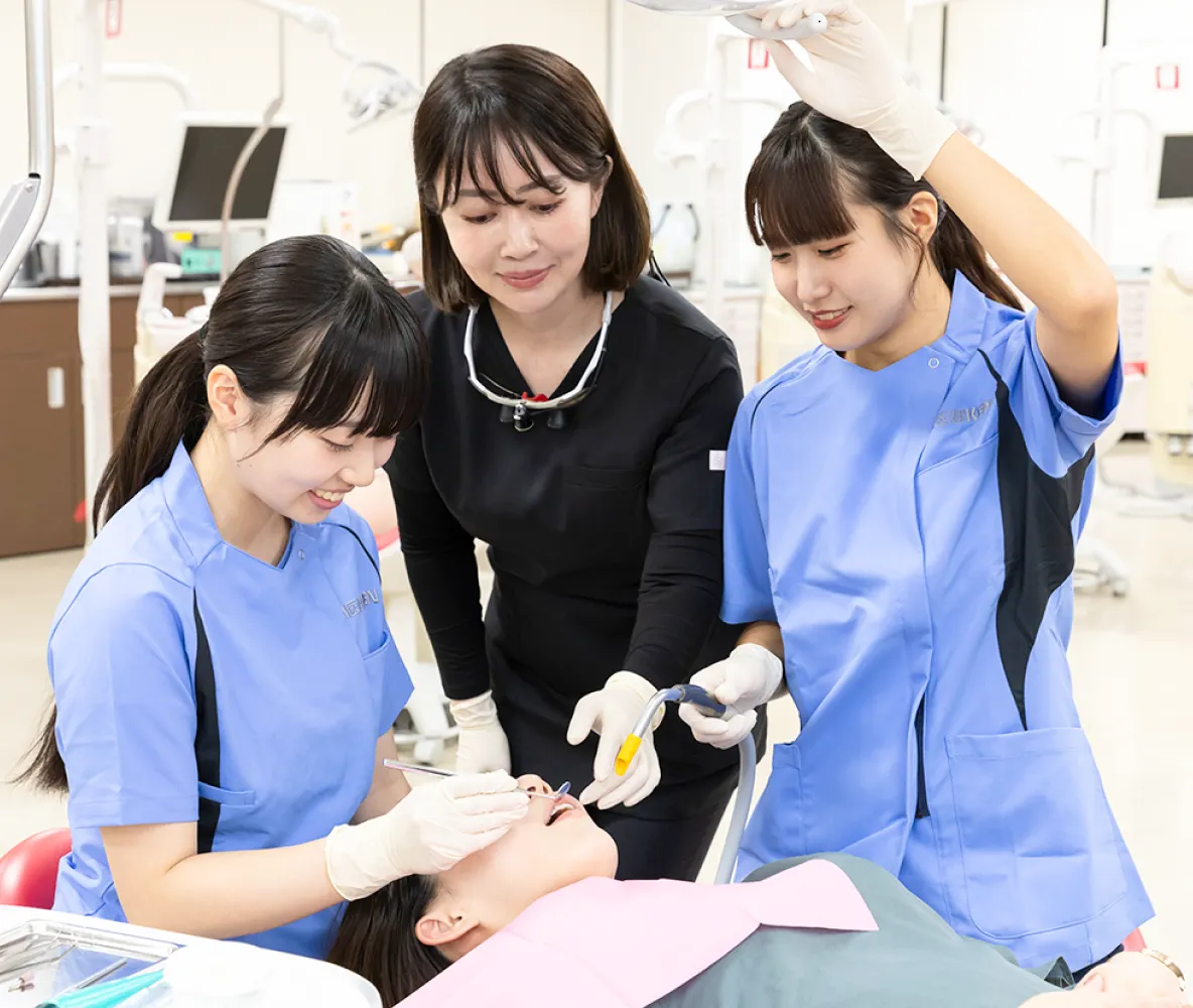 - 大学病院や一般歯科での臨床実習を通して現場力を身につけます