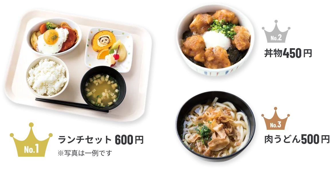 安くてガッツリ食べられるのは学食!学校から歩いて2分という好立地。ソフトクリームやお菓子、カップラーメンなどを売っている売店も併設されています!