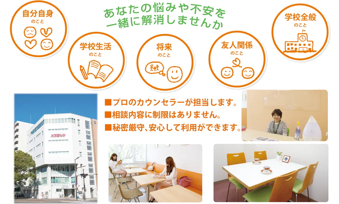滋慶トータルサポートセンターが運営する学生相談室スチューデントサービスセンター(SSC)は、学生の学校生活における【疑問】【要望】【相談】を、カウンセリングを通して解決に向け一緒に考え、サポートします。授業のこと、将来のこと、学校生活のこと、人間関係のこと、自分自身に対する悩み、不安についてカウンセラーがあなたの気持ちを聴いてくれる相談窓口です。