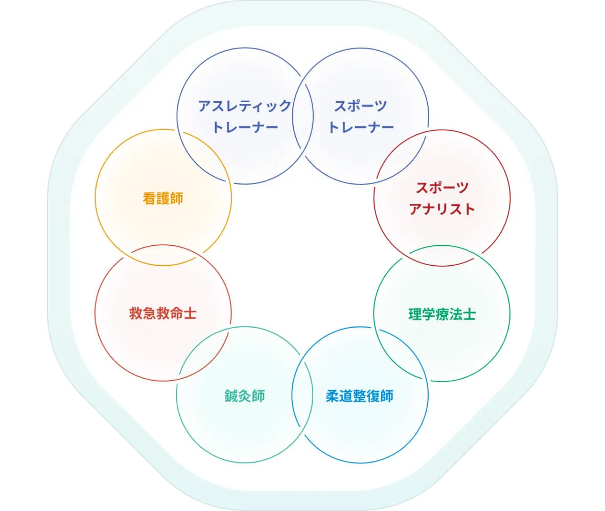 - 国際大会などに帯同するトレーナーの中にも柔道整復師資格保有者が多数存在し、選手が骨折や脱臼で負傷した際は施術が可能です。