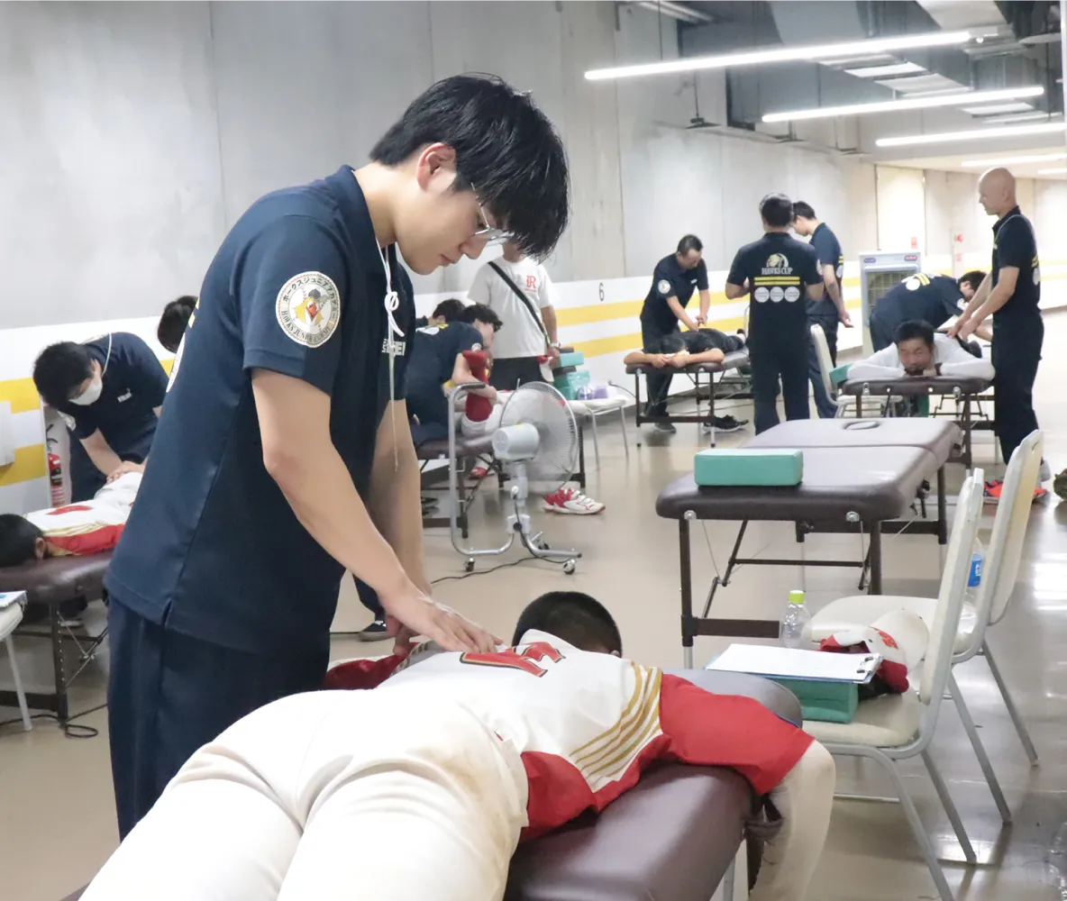 病院などの実習だけでなく、スポーツの現場実習も豊富に経験できます!